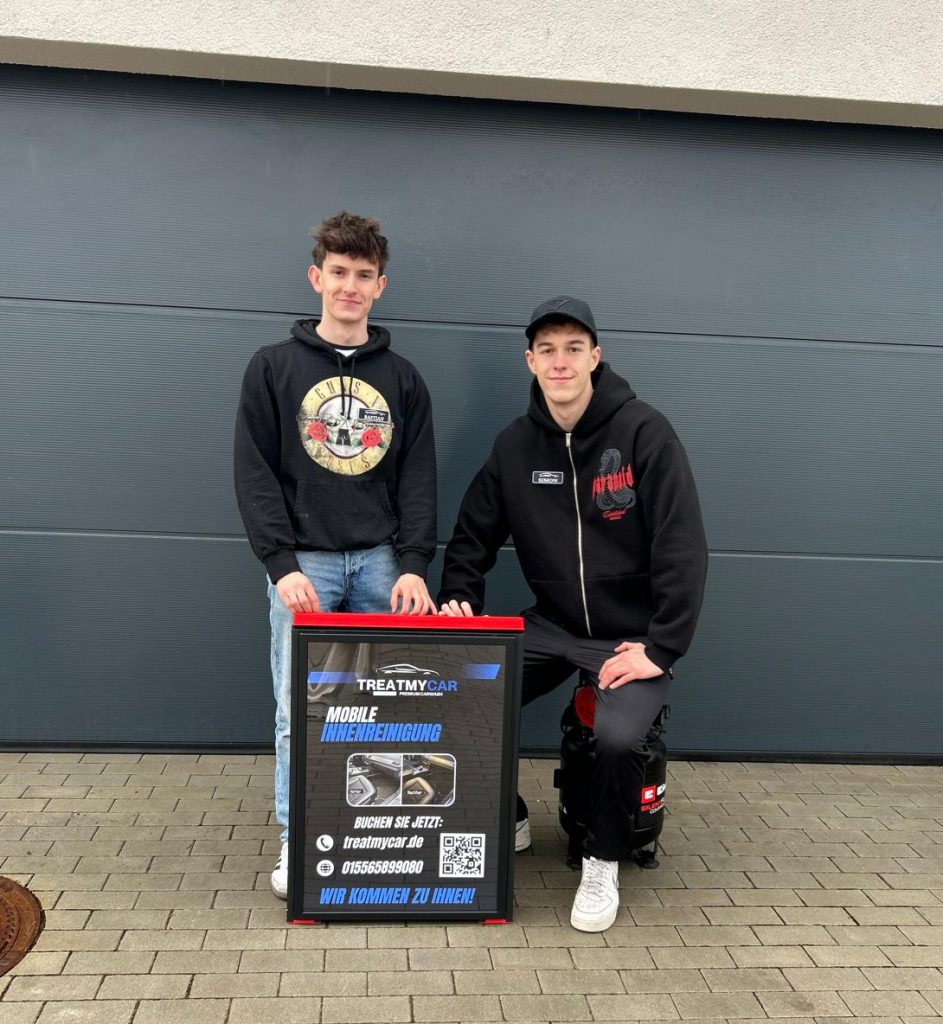 Wir, Basti und Simon, sind die Gründer und Geschäftsführer von TreatMyCar – dem mobilen Autopflegeservice, der direkt zu Ihnen nach Hause kommt. Unsere Mission ist es, Fahrzeugpflege so einfach und komfortabel wie möglich zu machen.